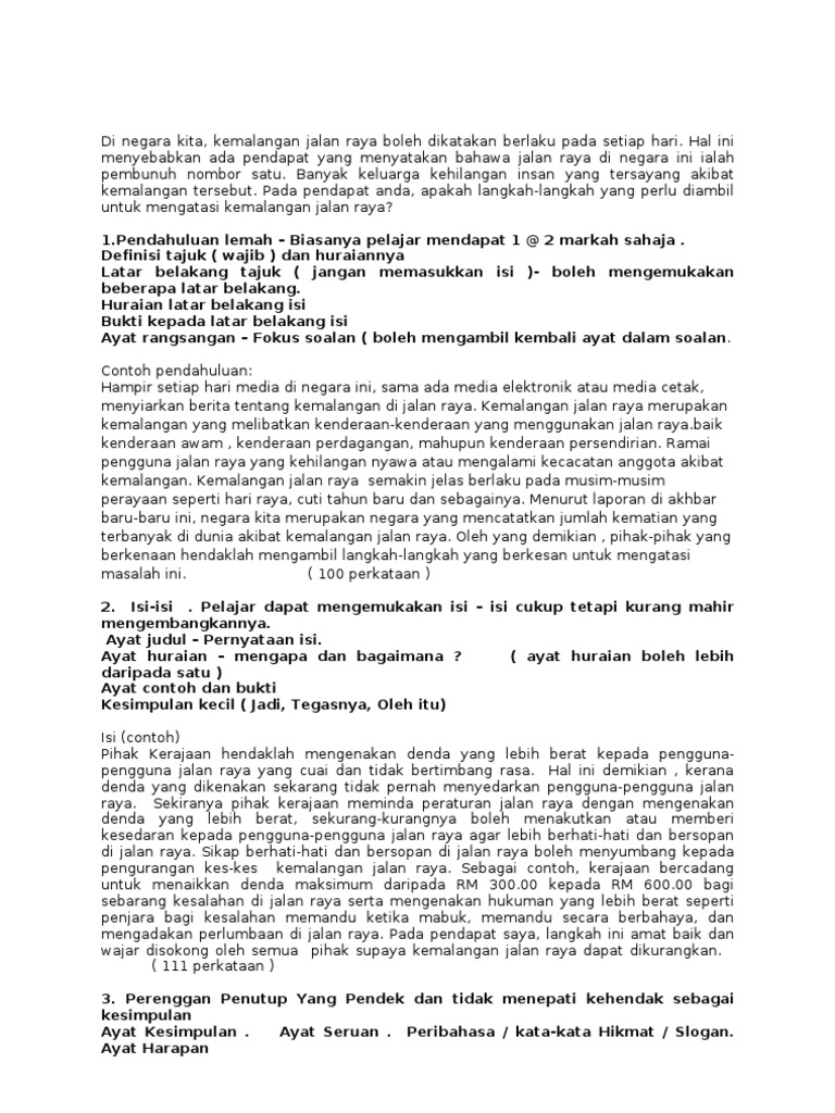 Secara umumnya pelajar boleh memilih cara menulis pengenalan sama ada secara umum atau memilih beberapa lagi jenis pengenalan yang lain. Anda boleh menggunakan contoh karangan di bawah sebagai panduan untuk membantu dalam penulisan karangan Bahasa Melayu. Karangan pendahuluan spm 1.